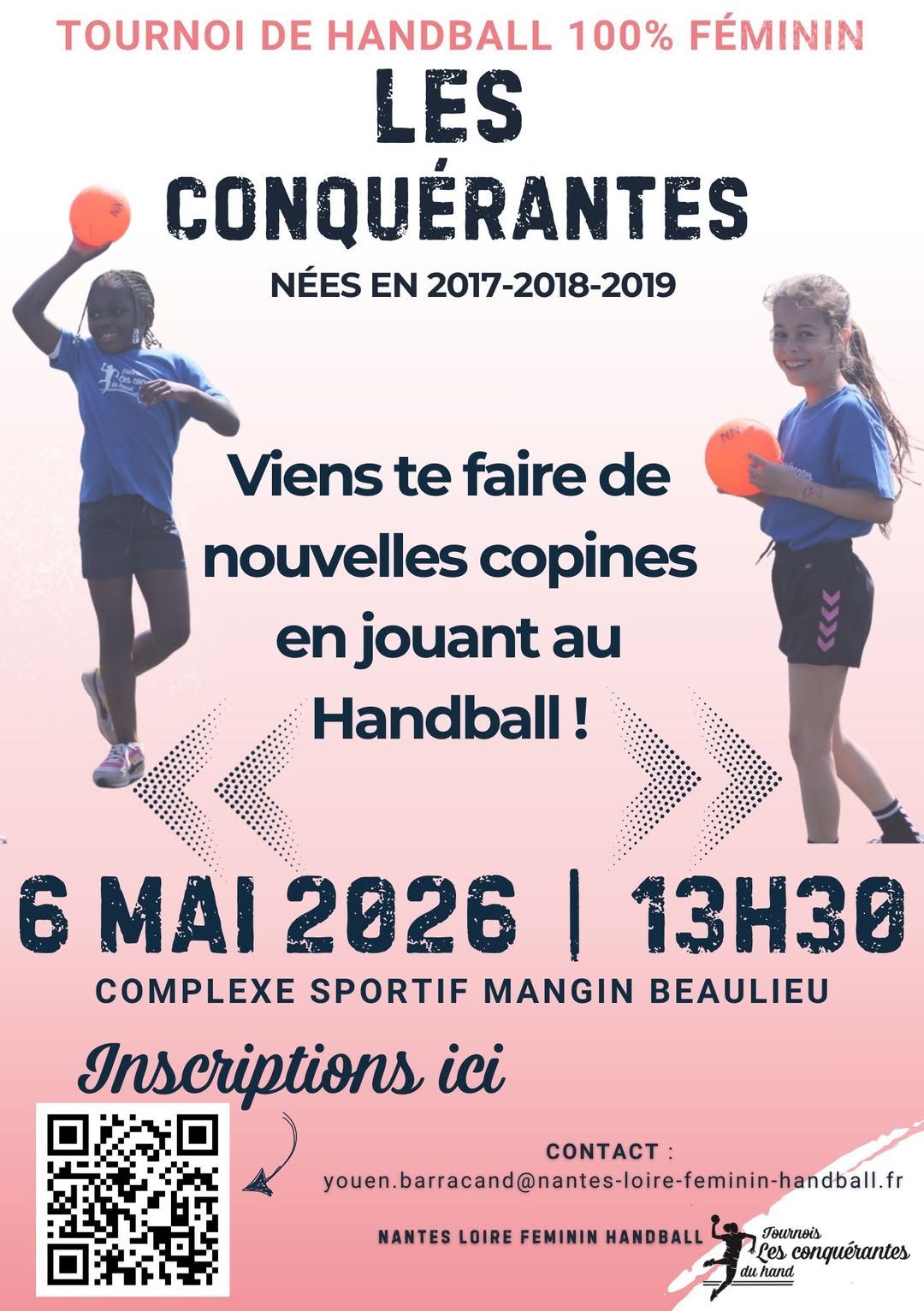 Le handball féminin sera à l’honneur à Nantes le mardi 6 mai 2026 avec l’organisation du tournoi « Les Conquérantes ». Cet événement s’adresse aux jeunes joueuses nées en 2017, 2018 et 2019, avec un objectif clair : favoriser la découverte du sport et encourager la pratique féminine dès le plus jeune âge.